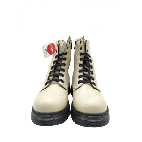 Bota estilo militar, de la marca Yowas. Fabricada en piel natural de primera calidad. Cierre mediante cordones y cremallera en el lateral. Plantilla acolchada. Piso de goma con suela antideslizante.