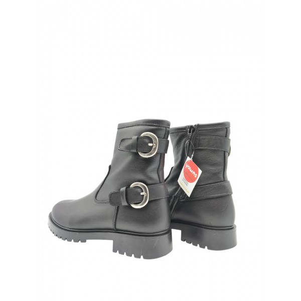 Botín estilo motero, de la marca Yowas. Fabricada en piel natural de primera calidad con dos hebillas laterales. Cierre mediante cremallera en el lateral interior. Plantilla acolchada. Piso de goma con suela antideslizante.