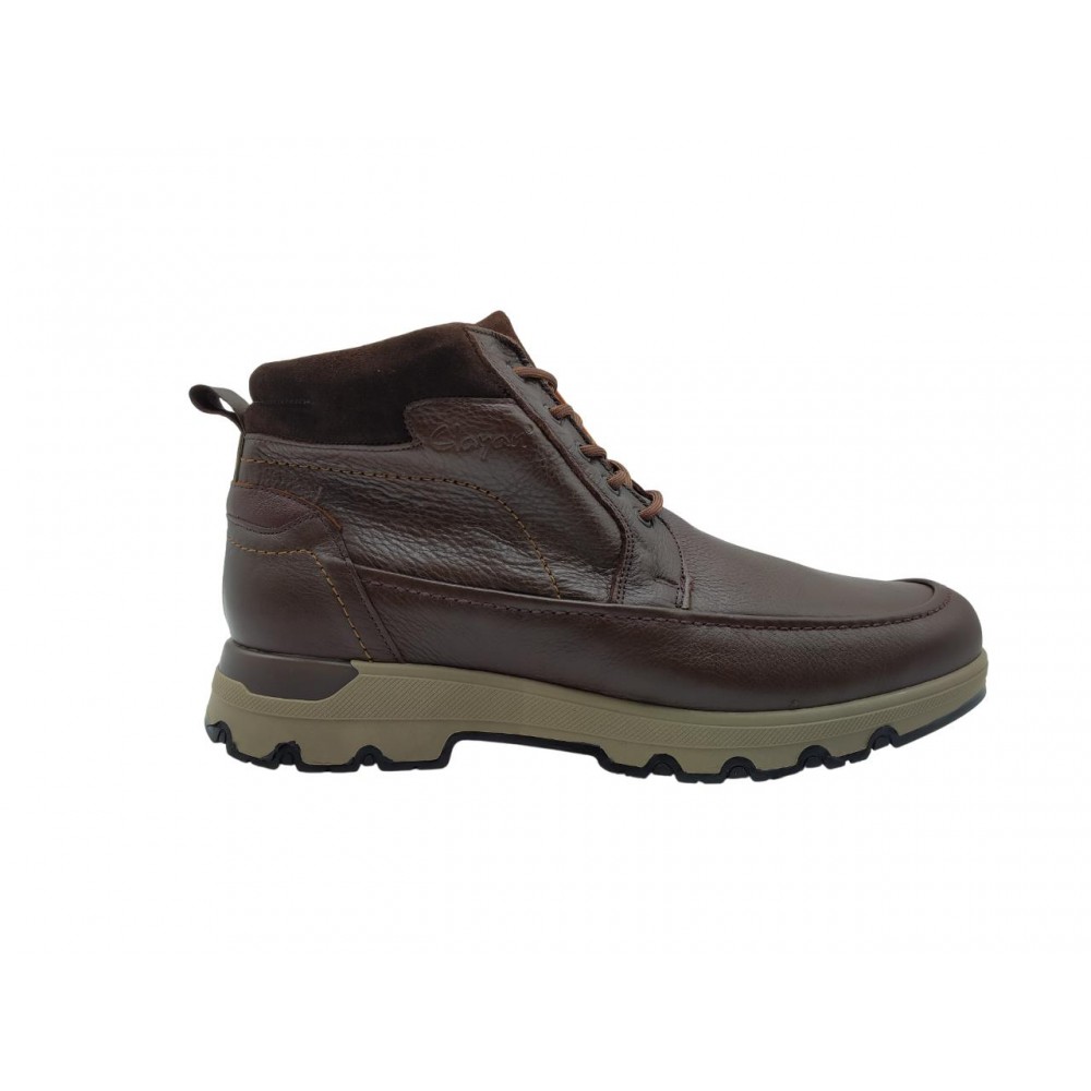 Bota sport para caballero, de la marca Clayan. Fabricado en piel con forro textil. Cierre mediante cordones. Suela de goma reforzada antideslizante.
