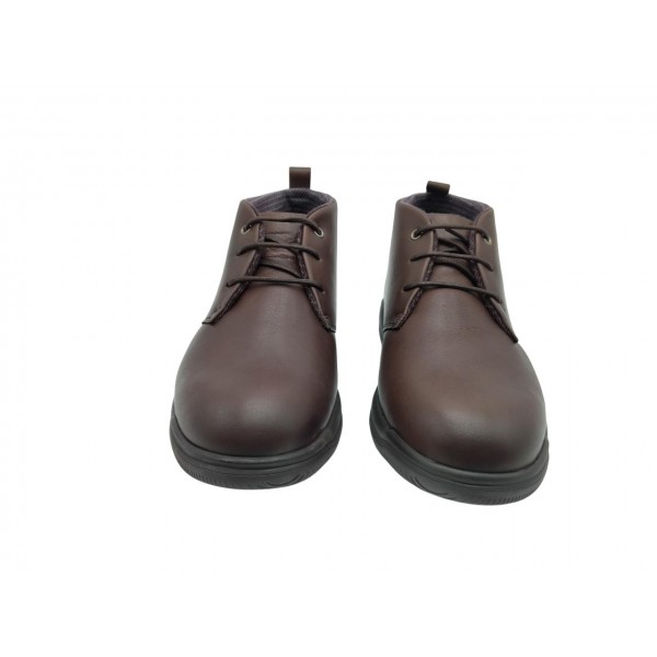 Botín hidrofugado confort de hombre, de la marca Baerchi. Fabricado en piel de vacuno de primera calidad. Forro interior textil. Cierre mediante cordones. Plantilla anatómica de microfibra de última generación, 100% transpirable y altamente absorbente. Suela de caucho antideslizante.