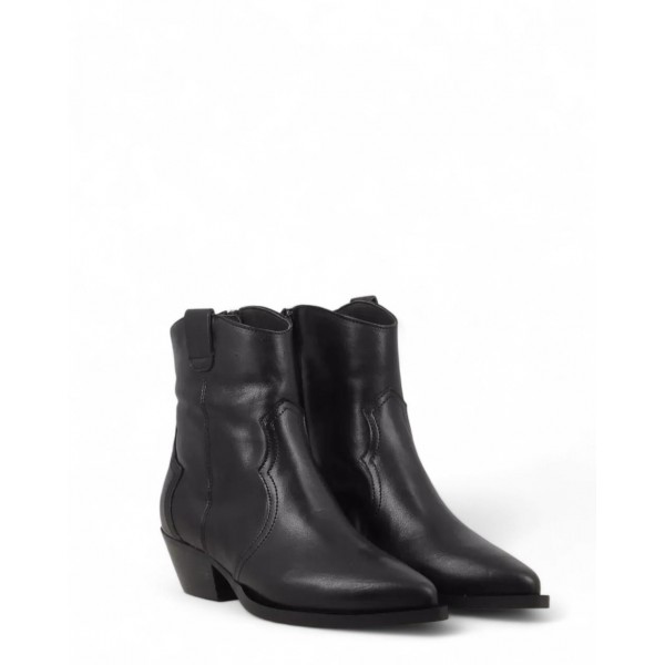 Botín campero para mujer, de la marca Alpe. Fabricado en piel de primera calidad con tacón de 4 cm. Suela antideslizante y puntera afilada. Cierre mediante cremallera y caña baja.
