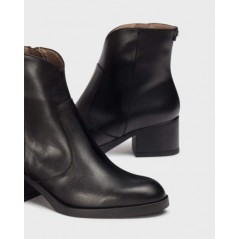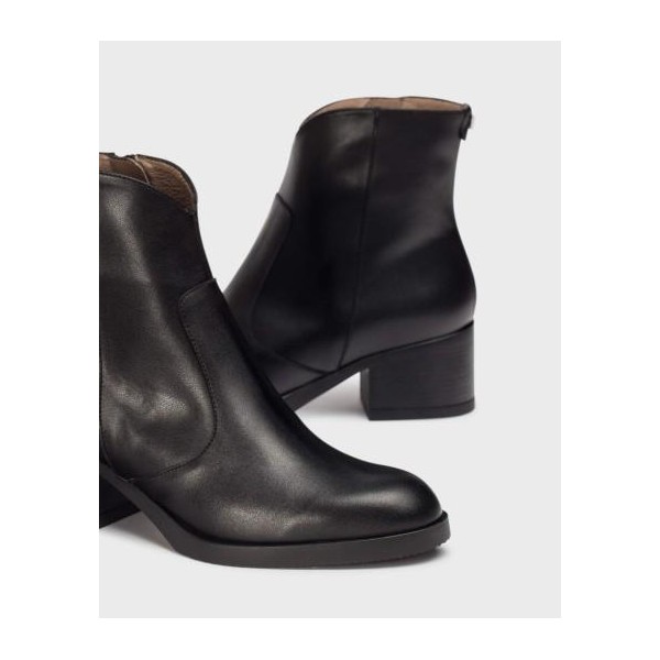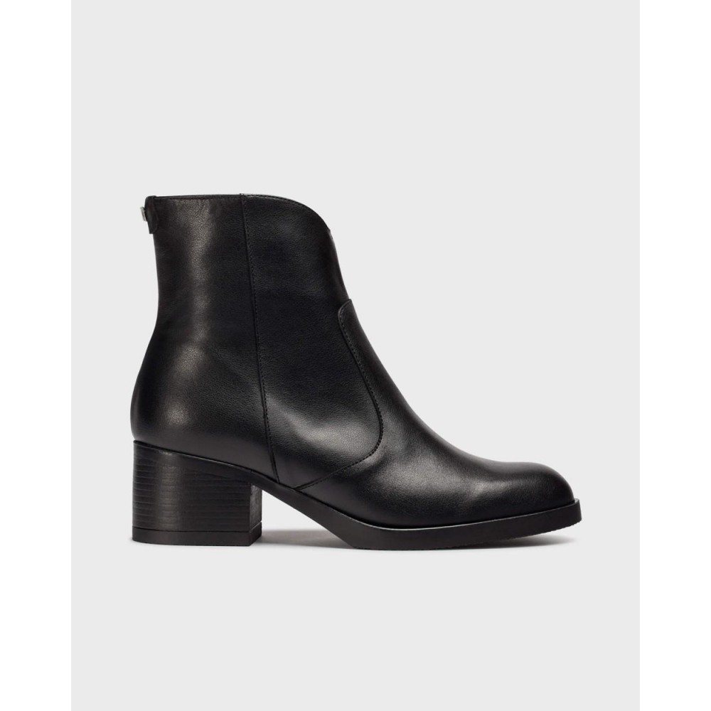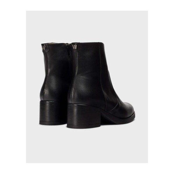 Botines de tacón, de la marca Wonders. Fabricados en piel lisa negra. Caña a media altura con cremallera lateral para un calce rápido y cómodo. Plantilla interior MemoryGel que asegura un confort absoluto durante todo el día. Suela robusta con tacón ancho.