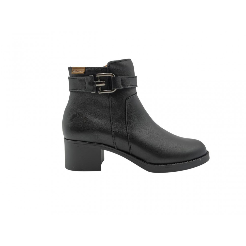 Botín tacón, de la marca Clayan. Fabricado en piel de alta calidad con adorno lateral. Cierre mediante cremallera interior. Piso de goma antideslizante.