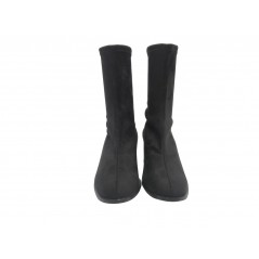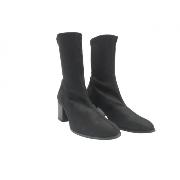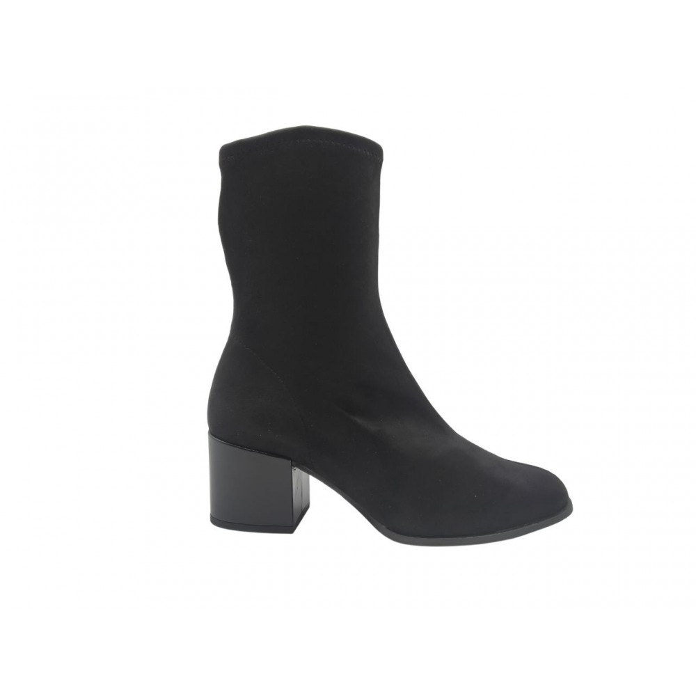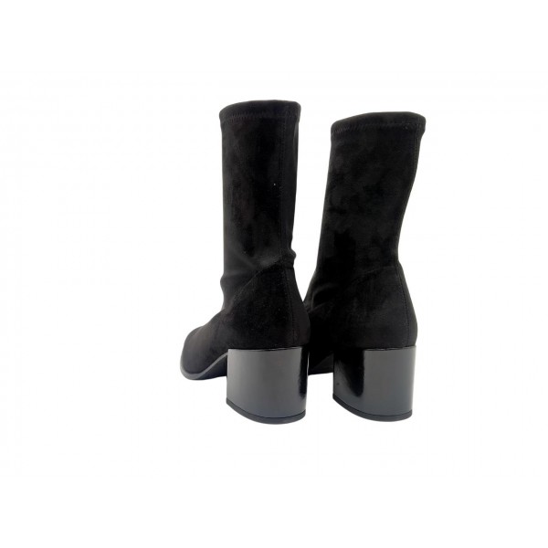 Botín strech con tacón, de la marca Daniela Vega. Fabricdo en material antelina elástico. Piso antideslizante con tacón forrado de charol.