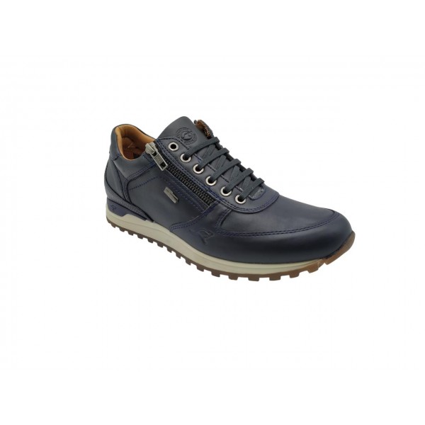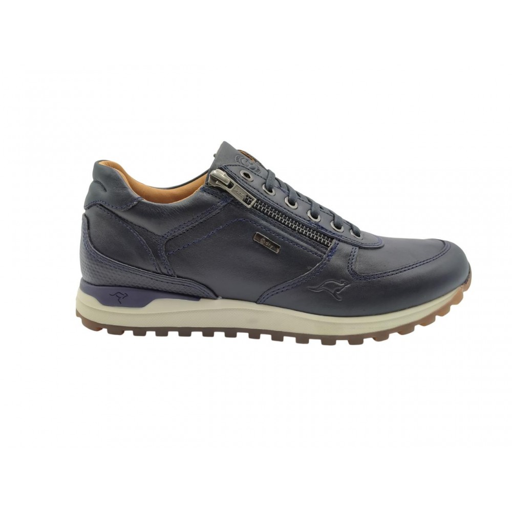 Zapato sport, de la marca Kangaroos. Confeccionado en piel de primera calidad, cómoda y flexible. Membrana Xdry que impermeabiliza del agua. Cierre mediante cordones al empeine y cremallera lateral. Plantilla extraíble. Piso de goma antideslizante.