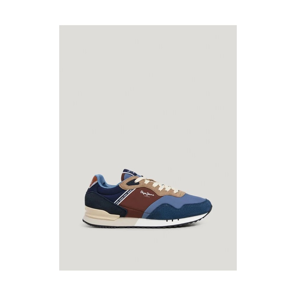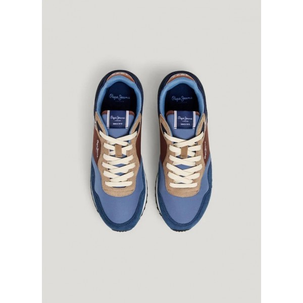 Deportivo casual, de la marca Pepe jeans. Fabricado en combinación de materiales con detalles de ante en puntera, cordonera y parte inferior del talón. Logo PEPEJEANS termosellado en lateral. Cierre mediante cordones. Plantilla termoformada y extraíble. Estabilizador en el talón con logo en relieve. Entresuela ultraligera de EVA bicolor. Suela de goma personalizada.