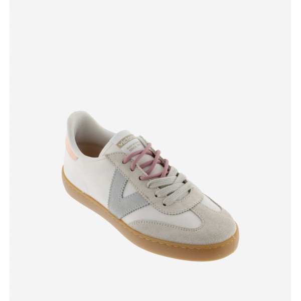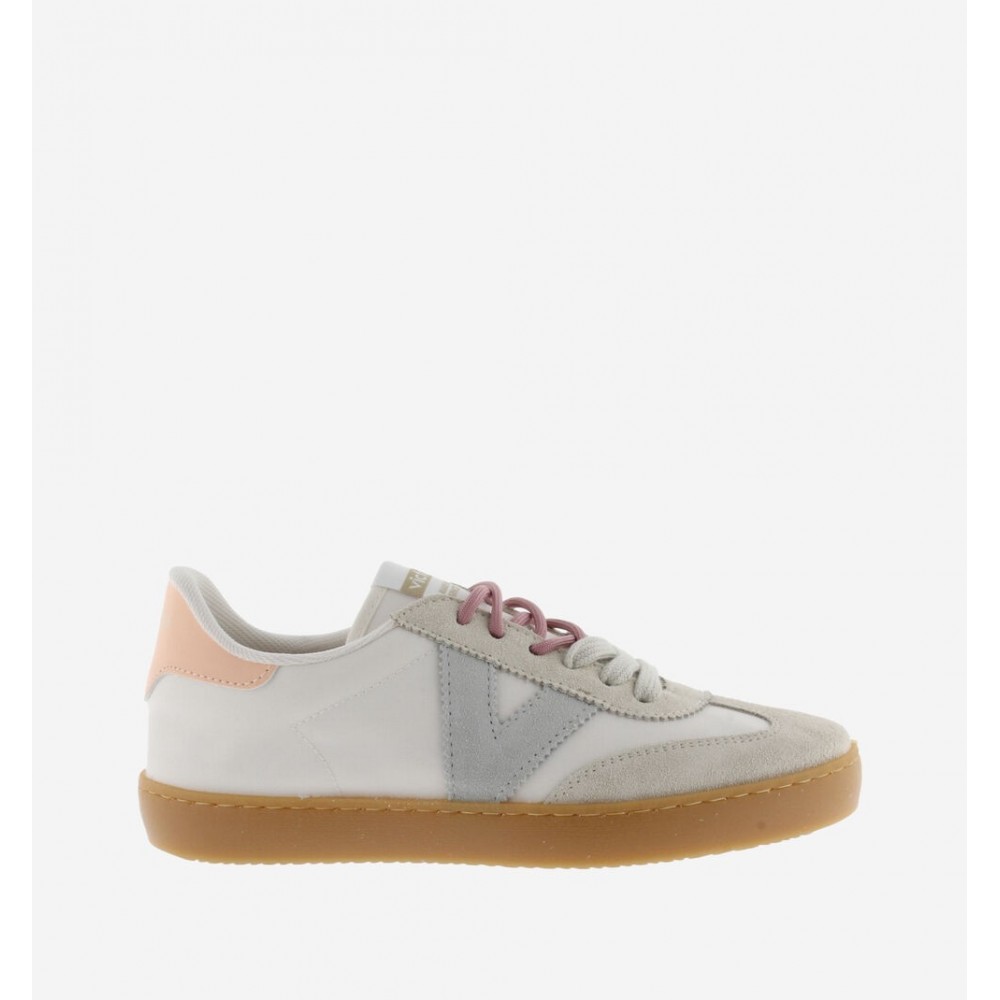Zapatillas multicolor, de la marca Victoria.Fabricadas en nylon con piezas de serraje. Cierre mediante doble cordón: unos al tono y otros coloridos de tipo redondo. Suela de T.R. traslúcido color caramelo.
