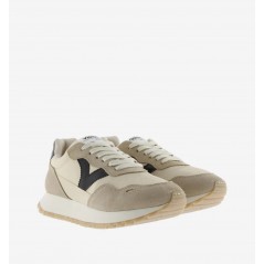 Sneakers para mujer, de la marca Victoria. Fabricadas en nylon con piezas de serraje superpuestas al tono. V de victoria lateral y pieza trasera con el logotipo de la marca en colores efecto piel a juego en contraste. Cómoda suela de phylon con patín de TPR en relieve color caramelo.