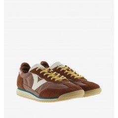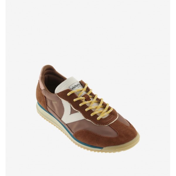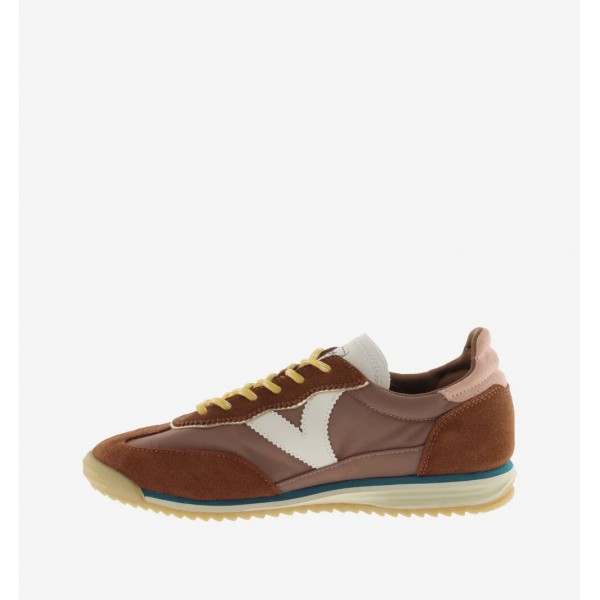 Sneakers para mujer, de la marca Victoria. Fabricadas en nylon con piezas superpuestas de serraje. V de victoria lateral en efecto piel blanca en contraste. Cierre mediante cordones de color de tipo redondo con estampado al tono. Suela bicolor de goma con patín dentado de EVA en color caramelo.