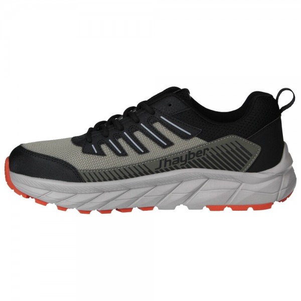 Deportivo trail running, de la marca J'hayber. Confeccionado con tejido de rejilla ligero y transpirable, ideal para mantener el pie seco durante rutas prolongadas. Cierre mediante cordones. Suela dentada de alto agarre, diseñadas para ofrecer máxima tracción y estabilidad en terrenos irregulares, pedregosos o húmedos.