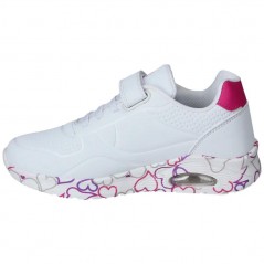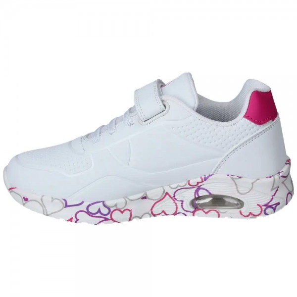 Deportivo casual infantil, de la marca J'hayber. Fabricado en material sintético de alta calidad ideales para un look moderno y alegre. Cierre mediante velcro que facilita el calce. Incorpora una cámara de aire visible en el talón. Suela decorada con corazones en tonos rosa y lila que aporta un toque divertido.