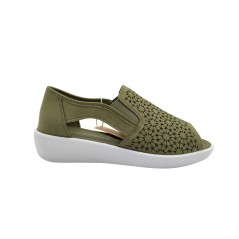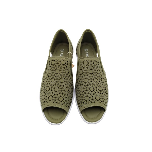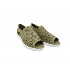Sandalia calada, de la marca Pikarinas (Vulca Bicha). Fabricada en microfibra calada a láser, talón derrado y puntera abierta. Cierre mediante dos elásticos laterales. Plantilla no extraíble. Suela de EVA flexible y ligera.