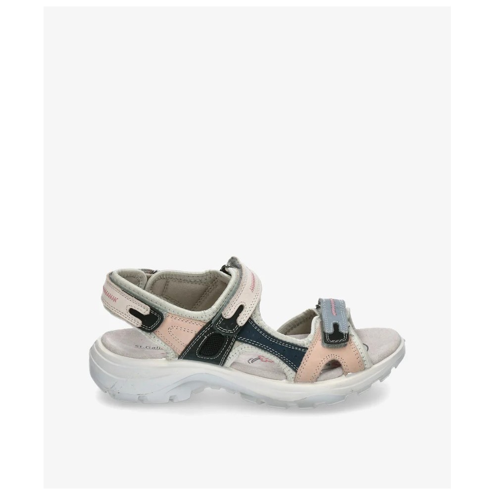 Sandalia trekking, de la marca St. Gallen. Fabricada en piel con forro interior textil. Cierre mediante velcro. Plantilla acolchada. Piso de goma antideslizante.