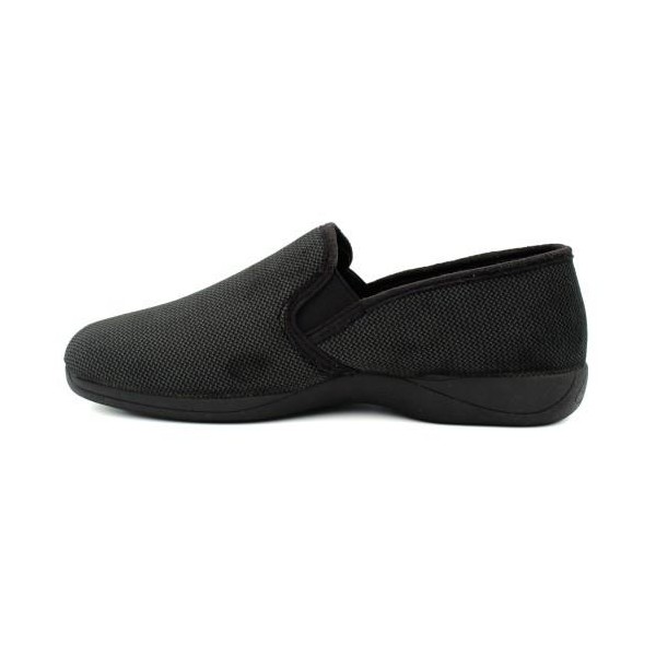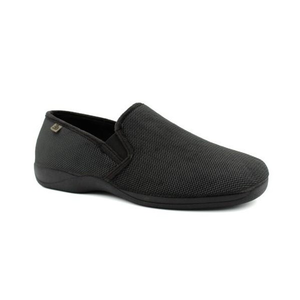 Zapatilla de casa cerrada, de la marca Berevëre. Fabricada en material textil calentito. Diseño de punta cuadrada y elásticos laterales que permiten adaptarse mejor. Piso antideslizante.