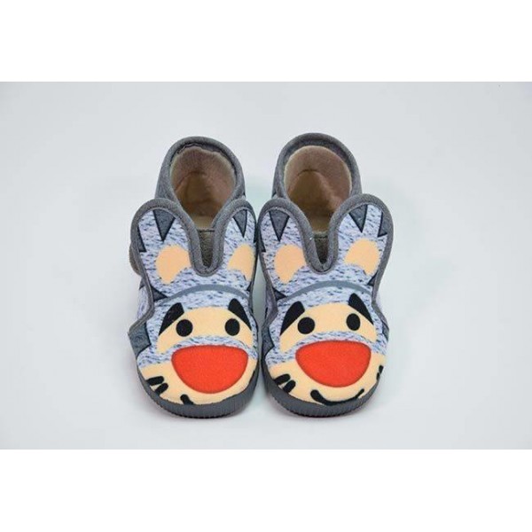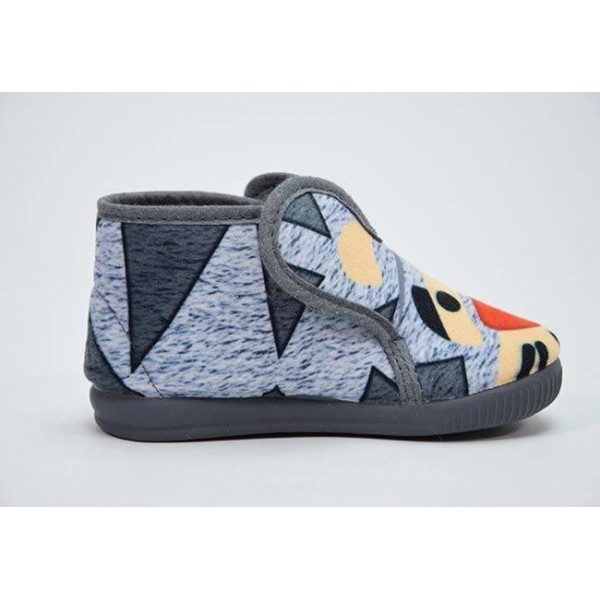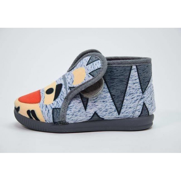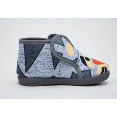 Zapatilla de casa infantil, de la marca Vulca-Bicha. Fabricadas en textil suapel muy calentitas. Cierre mediante velcro, que facilita el calce y el ajuste. Piso de goma antideslizante y muy flexible.