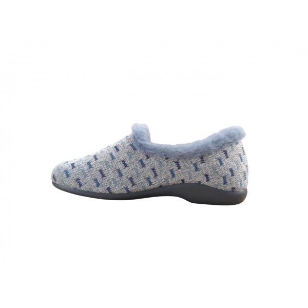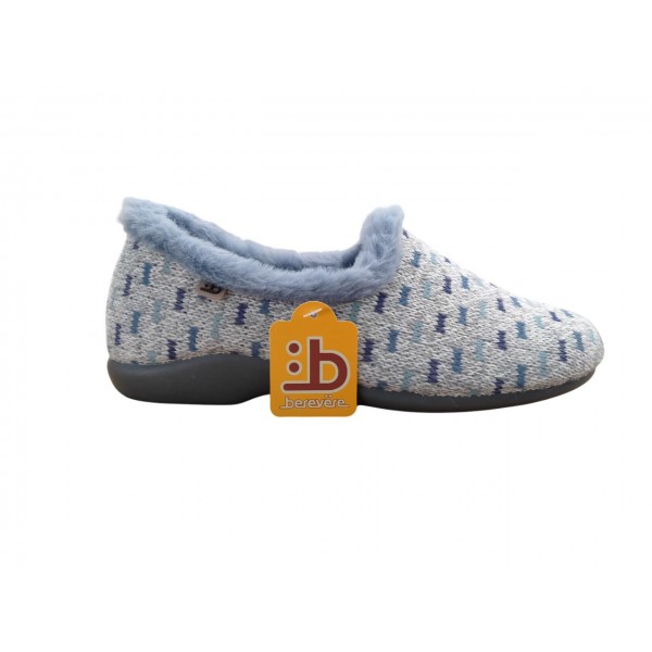 Zapatilla de casa cerrada, de la marca Berevëre. Fabricadas en textil suave y muy calentitas. Piso de goma antideslizante.