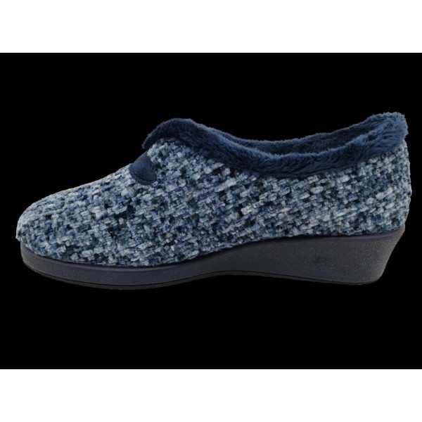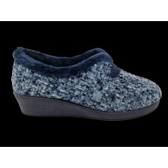 Zapatilla cerrada de cuña, de la marca Garzón. Fabricada en textil suave y calentito con ribete de pelo. Piso de goma antideslizante.