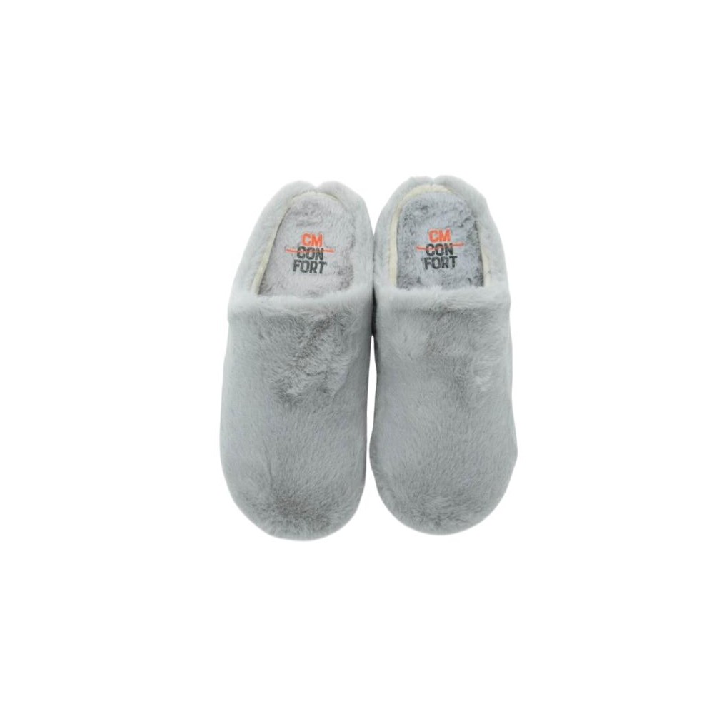 Zapatilla de casa descalza, de la marca CM Confort. Fabricada en tejido muy calentito y suave. Piso de goma antideslizante.