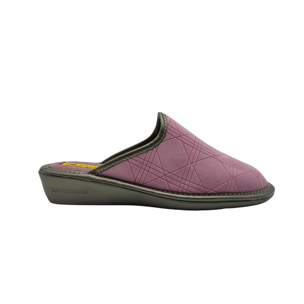 Zapatilla de cuña de andar por casa, de la marca Nordikas. Fabricado en terciopelo y forro interior textil muy calentito. Plantilla acolchada. Piso antideslizante.