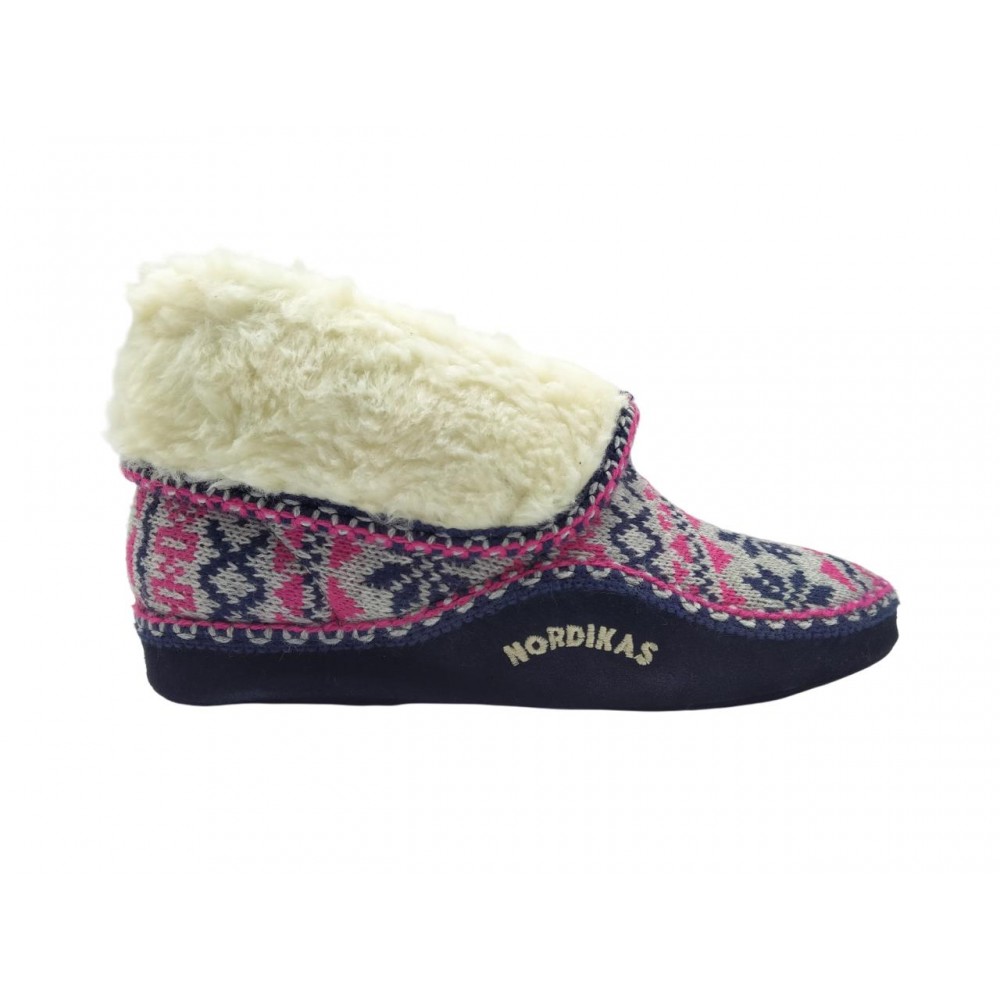 Zapatilla alta de lana, de la marca Nordikas. Fabricada en material textil de primera calidad con forro interior de lana. Suela de goma flexible y antideslizante.
