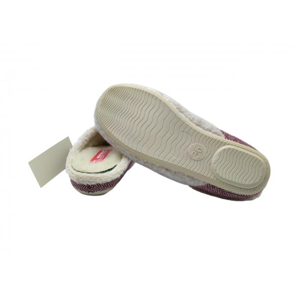 Zapatilla de casa descalza para mujer, de la marca Norteñas. Fabricadas en material textil muy calentito con forro de lana virgen. Piso de goma antideslizante.