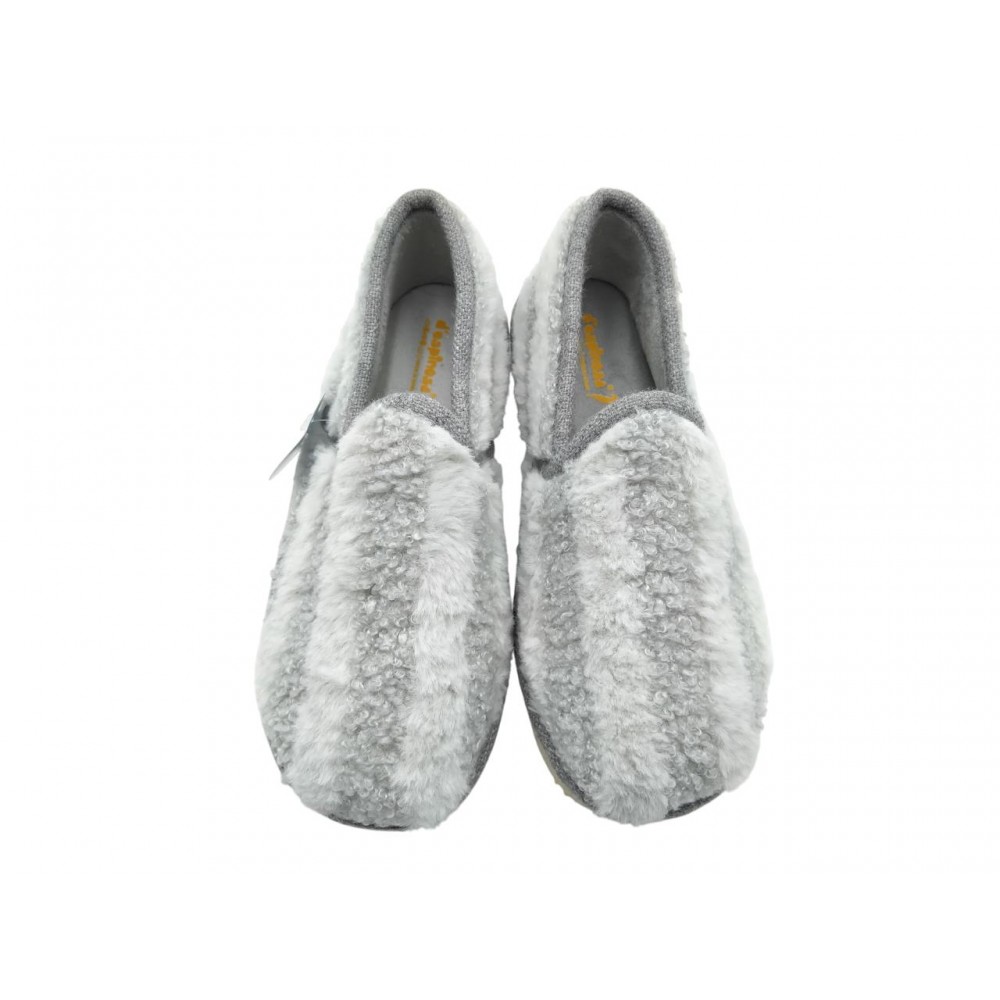 Zapatilla de casa cerrada, de la marca D'espinosa. Fabricada en textil muy suave y calentito. Piso ligero microporoso.