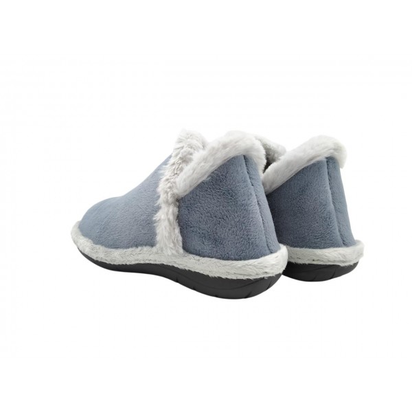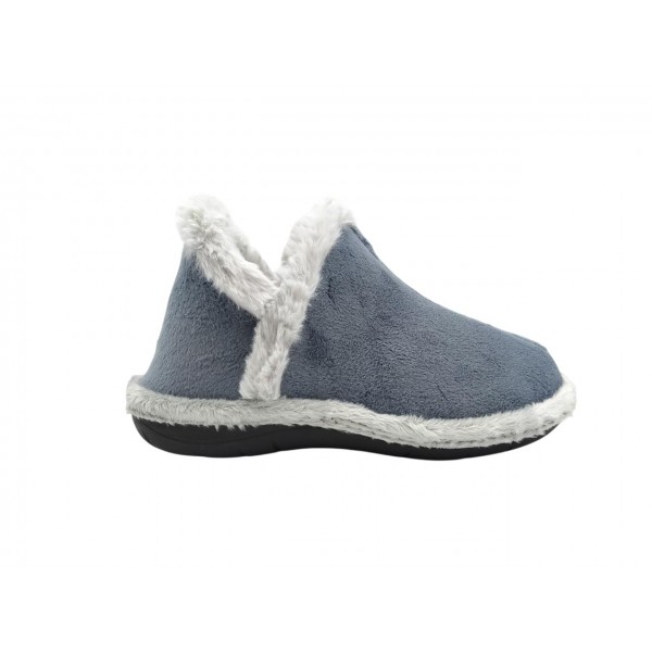 Zapatilla de casa abotinada, de la marca Suaveflex. Fabricada en material muy suave y calentito, con ribete suapel. Piso de goma antideslizante y flexible.