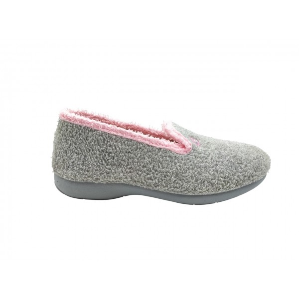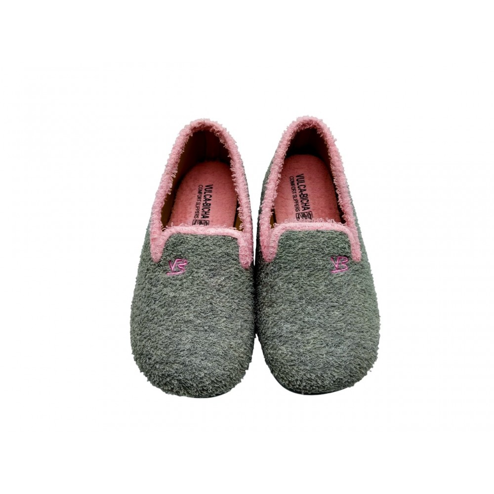 Zapatilla de casa cerrada, de la marca Vulca Bicha. Fabricada en material textil rizo. Plantilla extraíble. Piso de goma antideslizante.