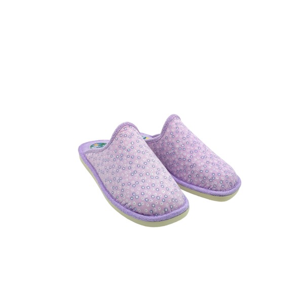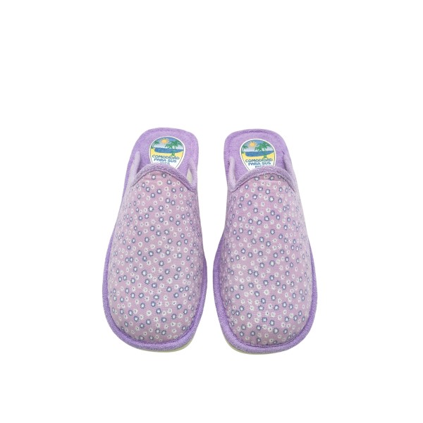 Chinela punta cerrada, de la marca Berevëre. Fabricado en textil con estampado de flores. Piso microporoso.