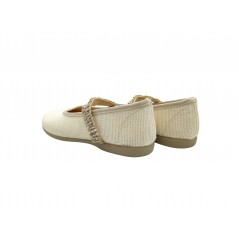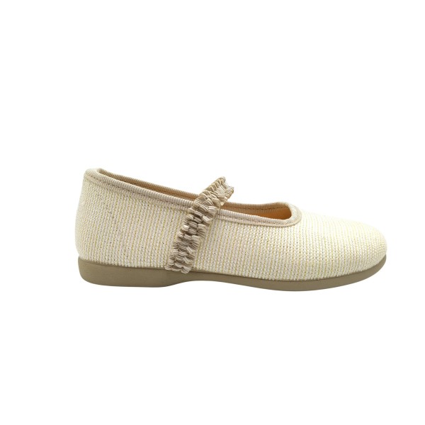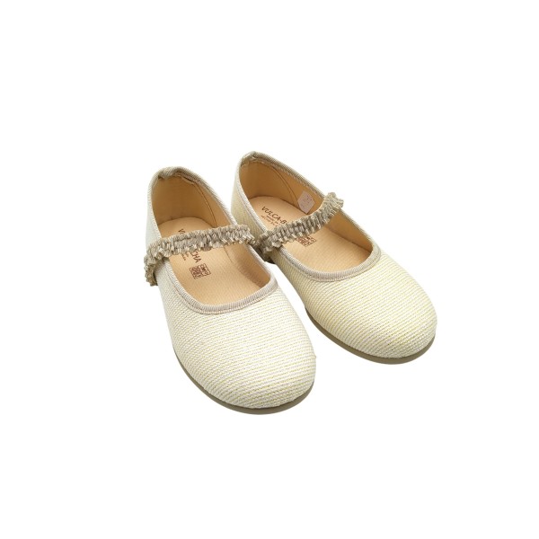 Zapatilla salón infantil, de la marca Vulca Bicha. Fabricada en material textil con tira elástica en el empeine. Plantilla textil. Piso de goma antideslizante.