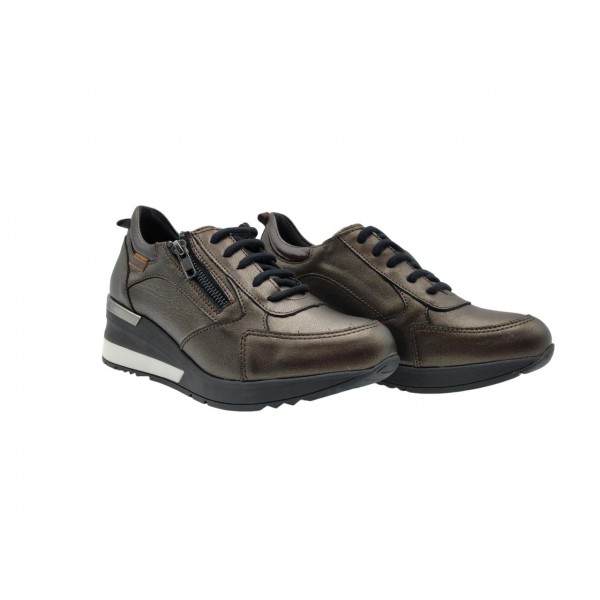 Zapato de cuña ancho especial, de la marca Baerchi. Fabricado en piel de vacuno. Cierre mediante cordones y cremallera lateral que ofrece un ajuste preciso. Suela de caucho que ofrece excelente tracción y soporte.
