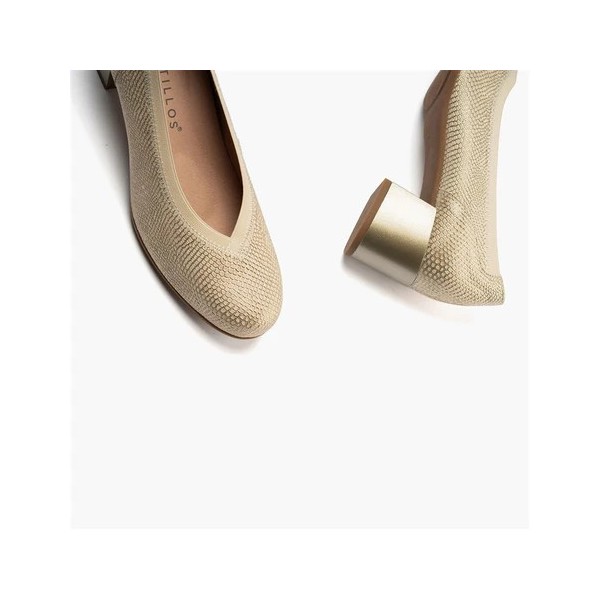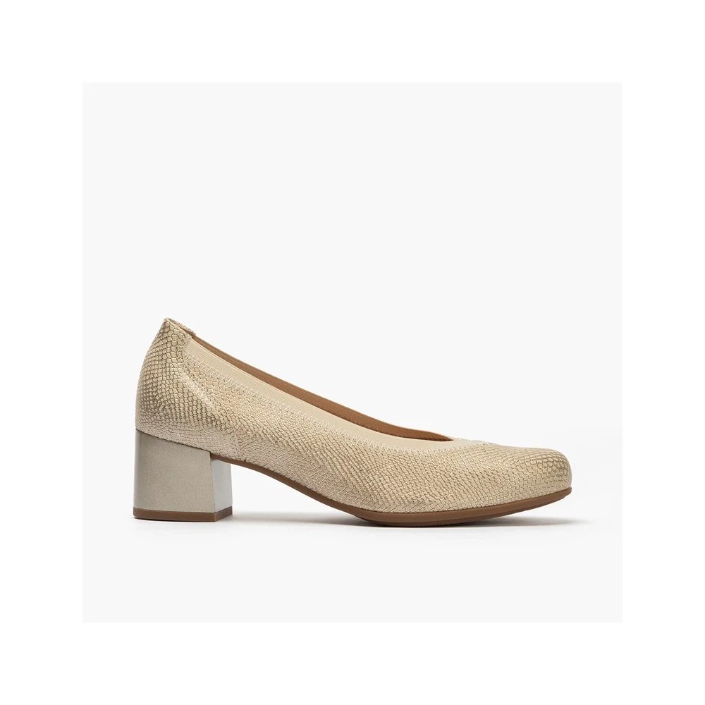 Zapato corte salón con ribete elástico, de la marca Pitillos. Fabricado en piel grabada fantasía. Forro técnico textil que aporta extra-confort y sensación térmica óptima. Plantilla extraíble técnica textil para extra-confort y sensación térmica óptima. Piso TPU con tacón medio.