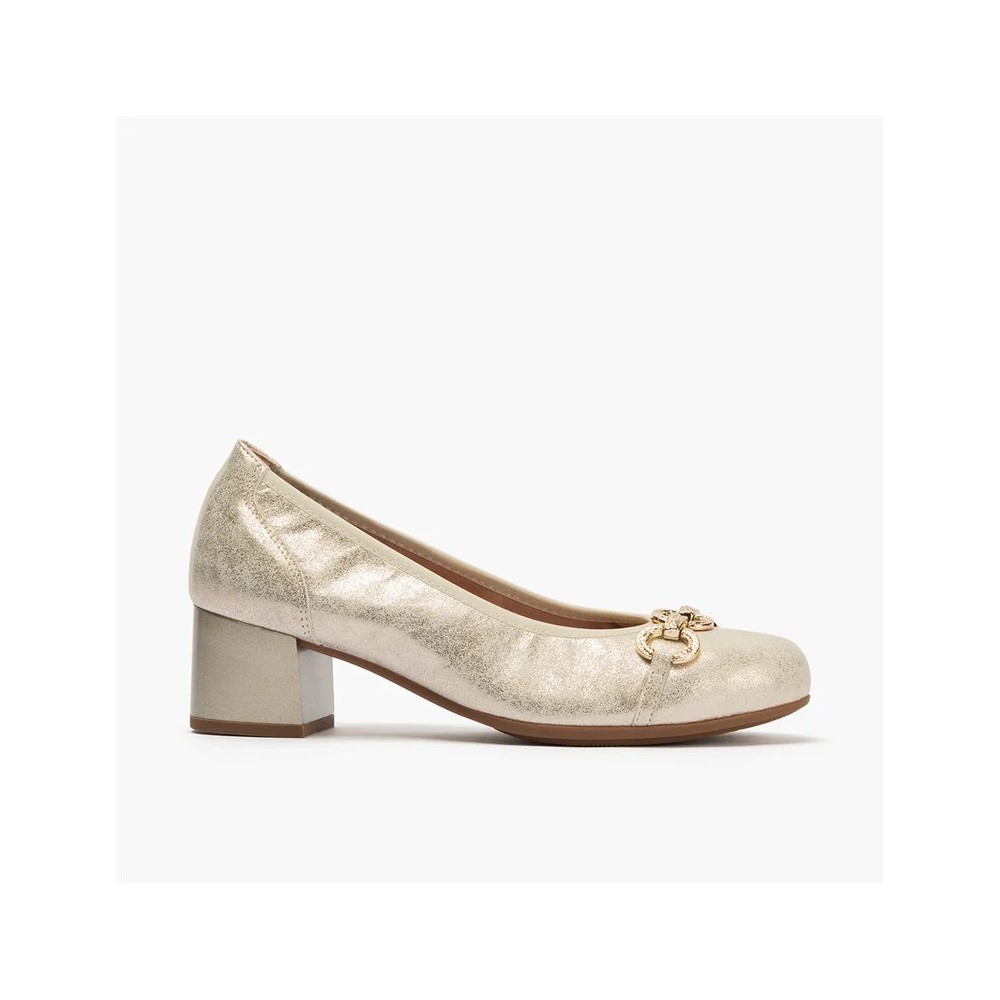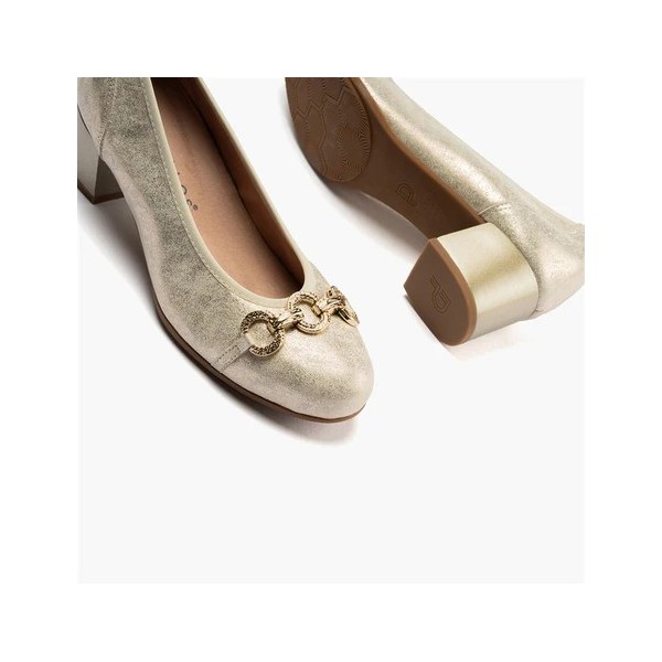 Zapato corte salón, de la marca Pitillos. Fabricado en piel fantasía brillante con adorno. Forro técnico textil que aporta extra-confort y sensación térmica óptima. Plantilla extraíble técnica textil para extra-confort y sensación térmica óptima. Piso TPU antideslizante con tacón medio.