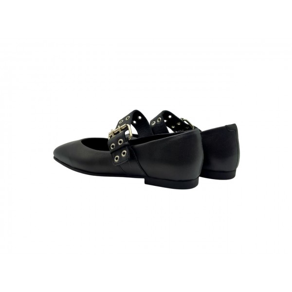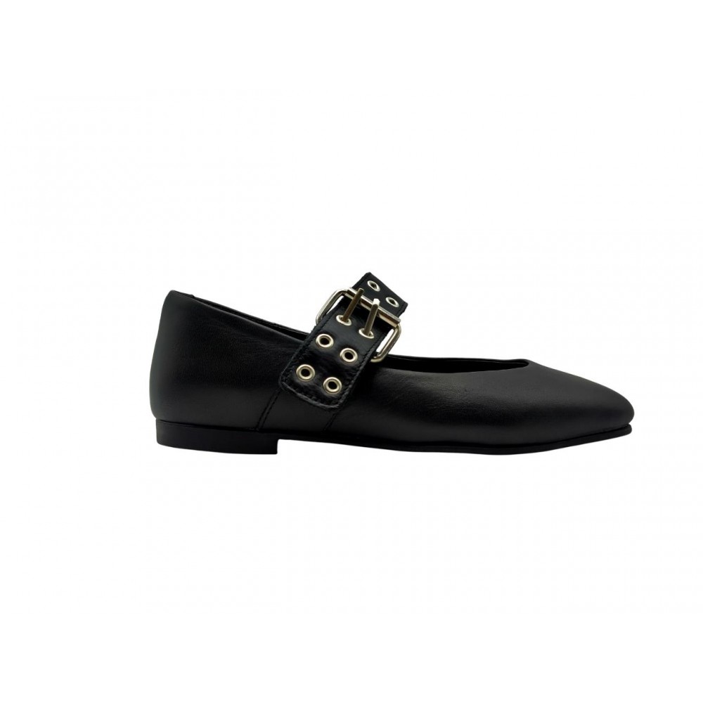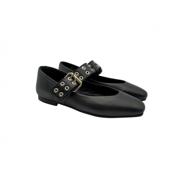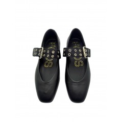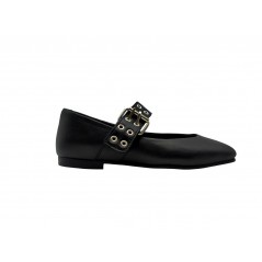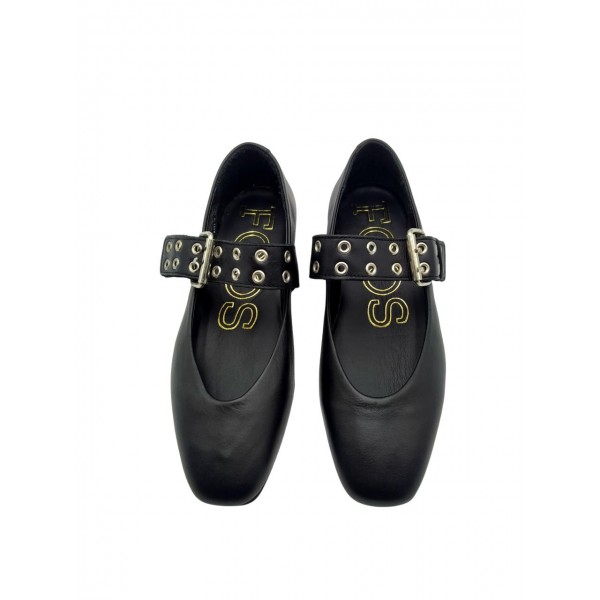 Merceditas de hebilla, de la marca Foos. Fabricada en piel con forro interior de piel. Cierre mediante hebilla ancha con tachas. Piso sintético.
